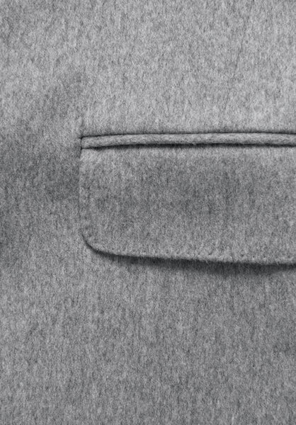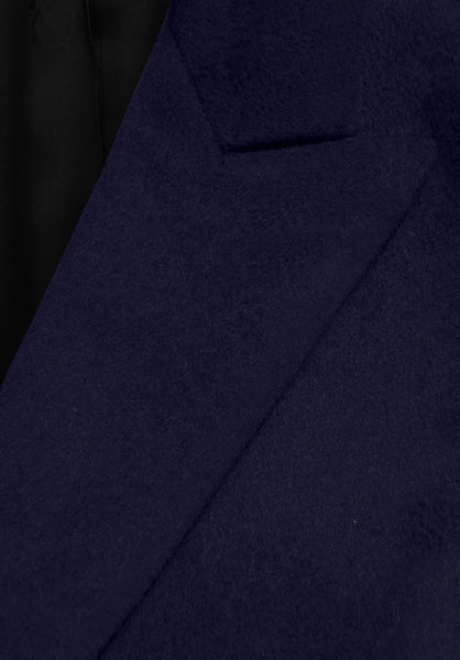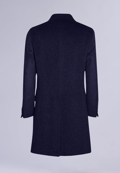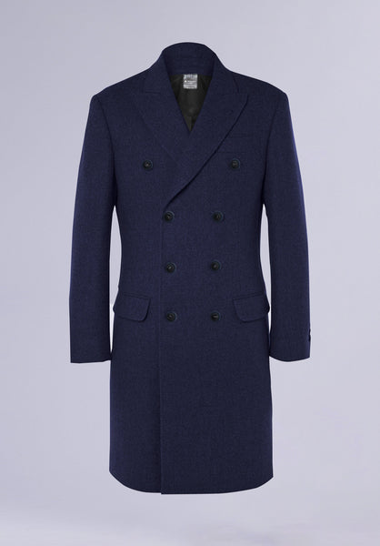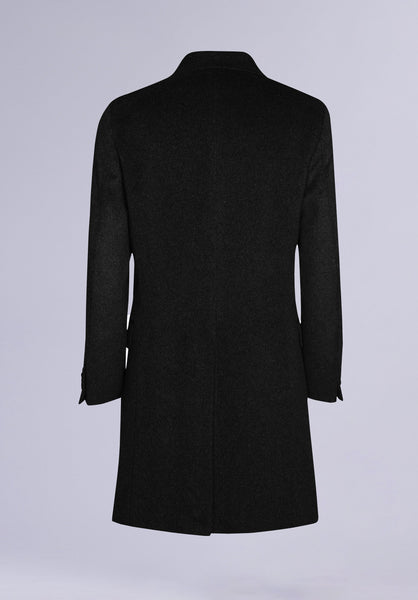 Fine wool topstitched standard coat from Harrington featuring a peak collar, a double-breasted front button placket, long sleeves, and stitching details.