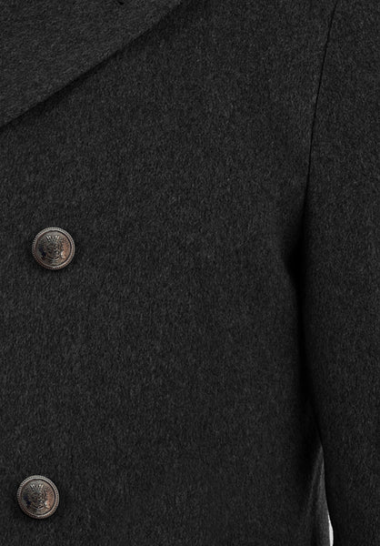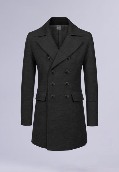 Fine wool topstitched standard coat from Harrington featuring a double-breasted front button placket, long sleeves, and stitching details.