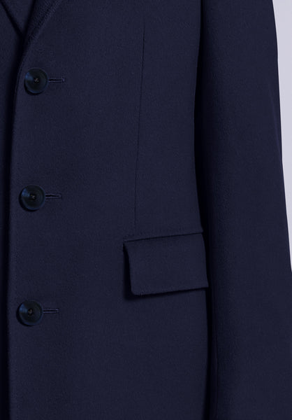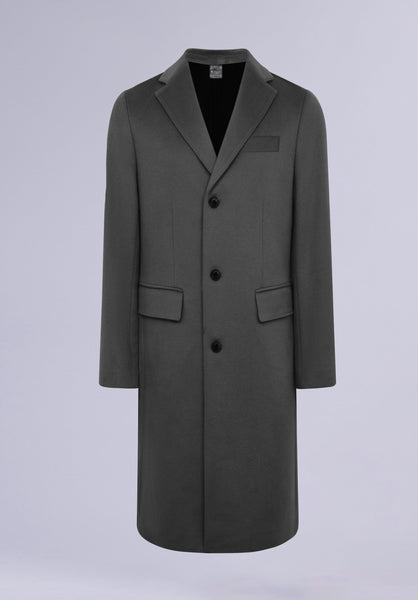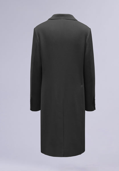 Made with lightweight wool, this top coat showcases a refined silhouette, complete with structured shoulders, a seamless button closure, and sleek-notch lapels.