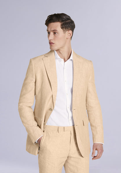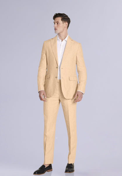 These cotton linen-blended suits are the ideal balance of comfort and style. With their lightweight design and great air permeability, these suits are the perfect fit for warmer temperatures. Having a subtle texture adds intrigue and dimension to the suits. The fit is modern and slim, creating a polished silhouette. The suits are versatile and can easily be dressed up or down, making them a must-have addition to any wardrobe.