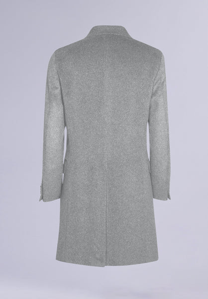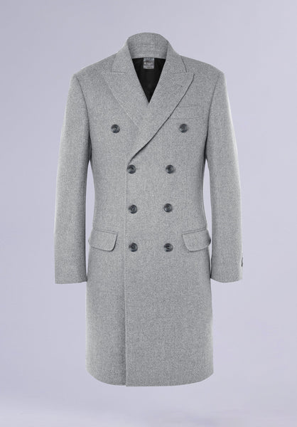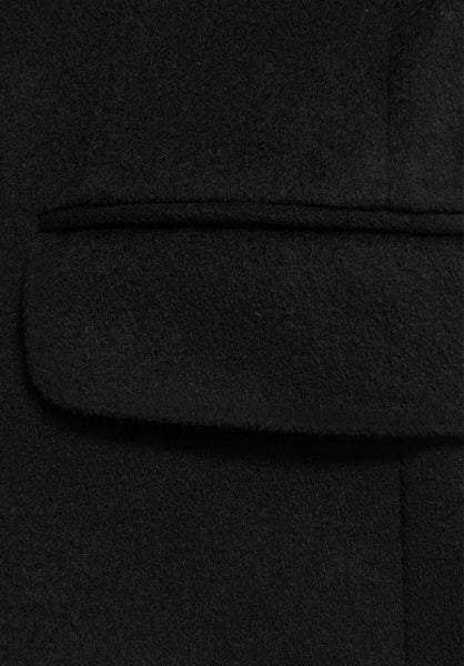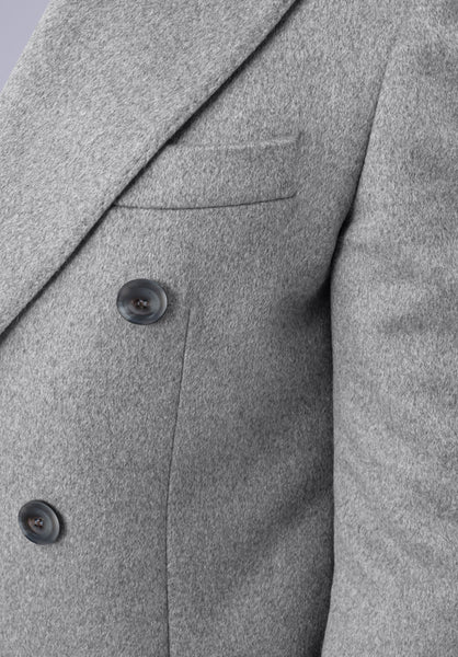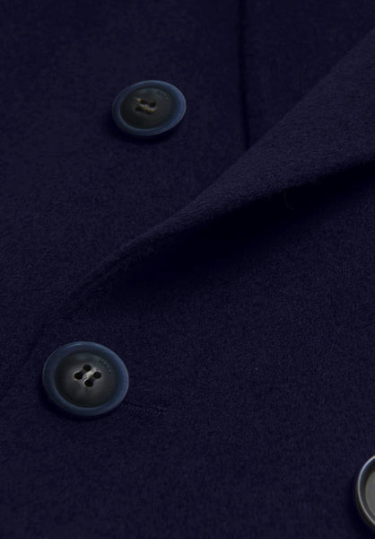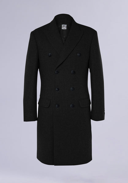 Fine wool topstitched standard coat from Harrington featuring a peak collar, a double-breasted front button placket, long sleeves, and stitching details.