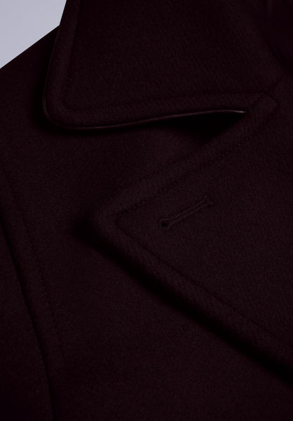 Fine wool topstitched standard coat from Harrington featuring a double-breasted front button placket, long sleeves, and stitching details.