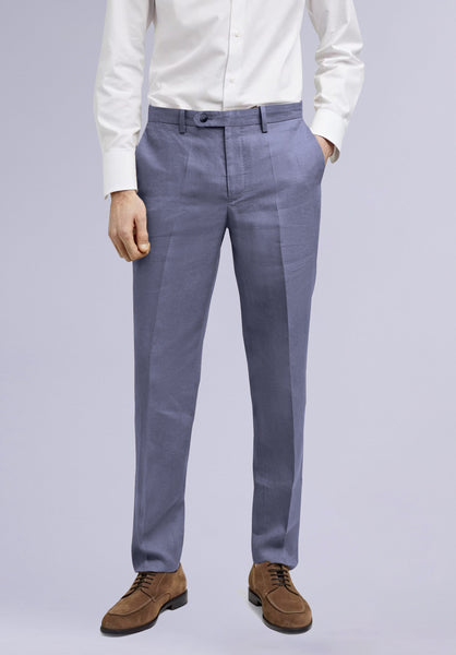 These cotton linen-blended pants are the ideal balance of comfort and style. With their lightweight design and great air permeability, these pants are the perfect fit for warmer temperatures. Having a subtle texture adds intrigue and dimension to the suits. The fit is modern and slim, creating a polished silhouette.