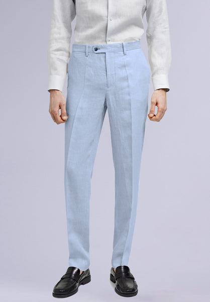 These cotton linen-blended pants are the ideal balance of comfort and style. With their lightweight design and great air permeability, these pants are the perfect fit for warmer temperatures. Having a subtle texture adds intrigue and dimension to the suits. The fit is modern and slim, creating a polished silhouette.